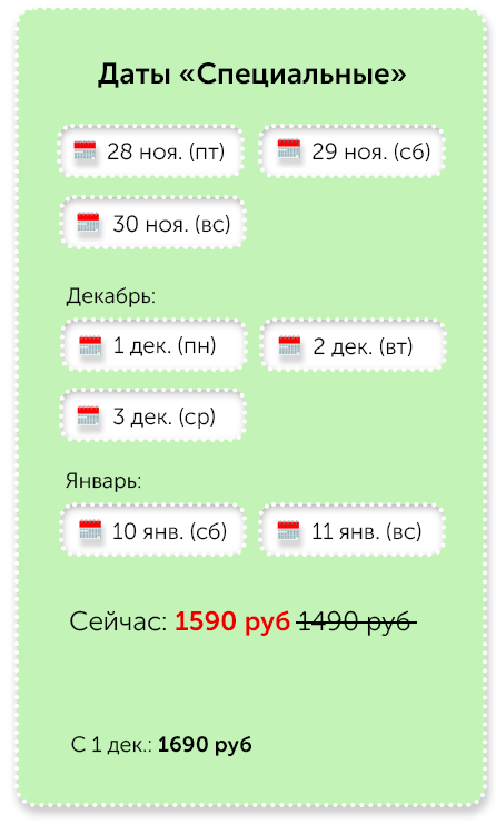Вы вносите предоплату за группу всего 5000 руб, чтобы закрепить за собой дату